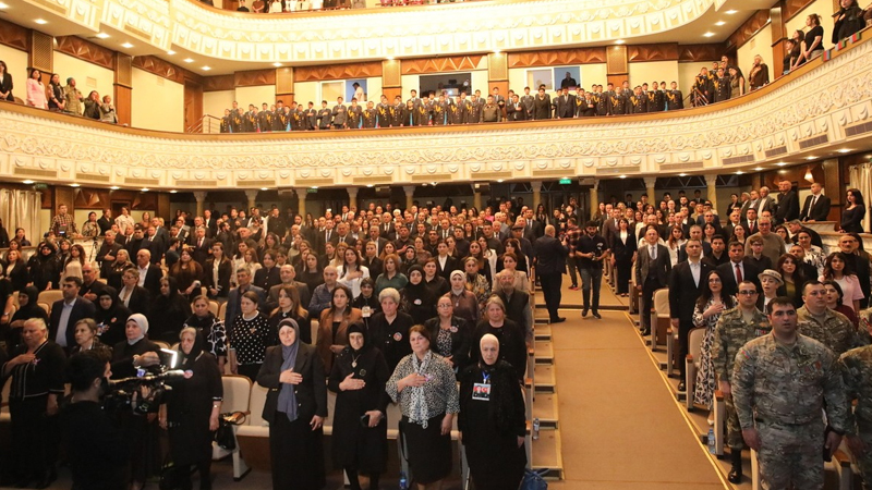 Akademik Milli Dram Teatrında baş tutan tədbirdə dövlət və hökumət rəsmiləri, Milli Məclisin deputatları, şəhid ailələri və qazilər, ziyalılar, gənclər təşkilatlarının təmsilçiləri, könüllü gənclər, ictimaiyyət və media nümayəndələri iştirak ediblər.